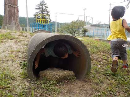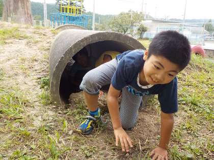 ブランコやジャングルジムなどの遊具で遊んだ他に,土管に入って遊んだり,ビオトープを散歩したりして楽しく過ごしました。