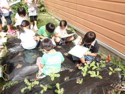 「ハートの形みたい。」「葉っぱがつるつるしている。」と,いろいろな発見をしていました。