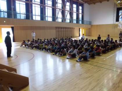 今日は,前期終業式。みんな校長先生のお話をしっかり聞いていました。立派な態度でした。後期も自分のめあてに向かって努力しましょう。