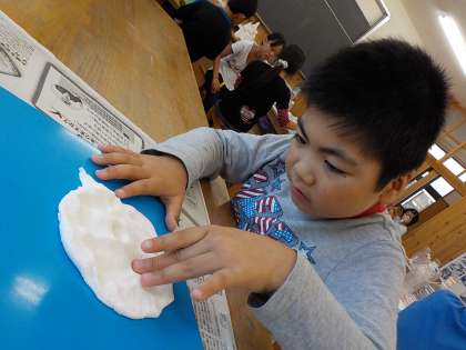 図画工作科の時間にペットボトルと粘土をつかった作品を作っています。