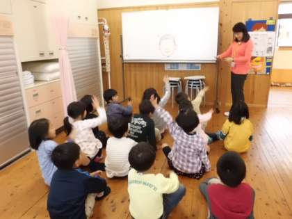 今日は,視力検査の日でした。はじめに,仲田先生から目についてのお話を聞き,まつ毛やまゆ毛のはたらき,黒目・白目・瞳について知ることができました。そして,いよいよ視力検査。仕方を覚えた子どもたちは,上手に検査を受けていました。