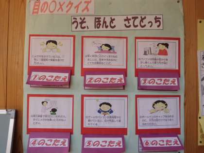 10月のほけん目標は,『目を大切にしよう。』です。みなさん,目にやさしい生活をしていますか。寝転んで本を読んだり,長い時間テレビを見たりしていませんか。これからも目にやさしい生活を心がけ,目を大切にしましょう。