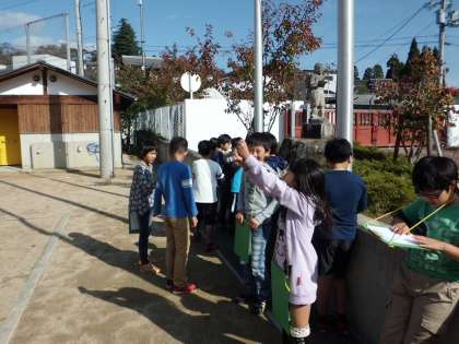 方位磁針で方角を確認しながら,観察をしていました。