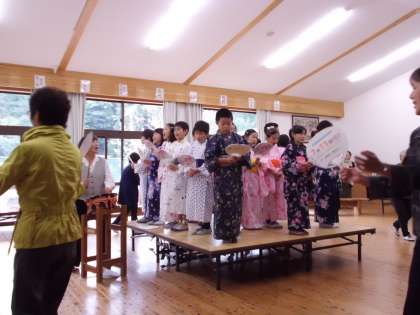 ステージの周りを丹波音頭保存会の方々や祖父母の方々に踊っていただきました。