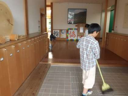 写真は,掃除時間の様子です。子どもたちは,「黙って掃除をしよう」と頑張っています。掃いたり,拭いたり…,子どもたちは,一生懸命学校をきれいにしています。