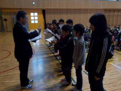 今日の朝会で,絵画の表彰がありました。