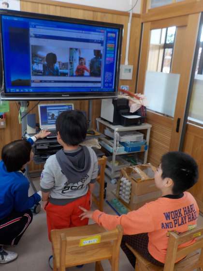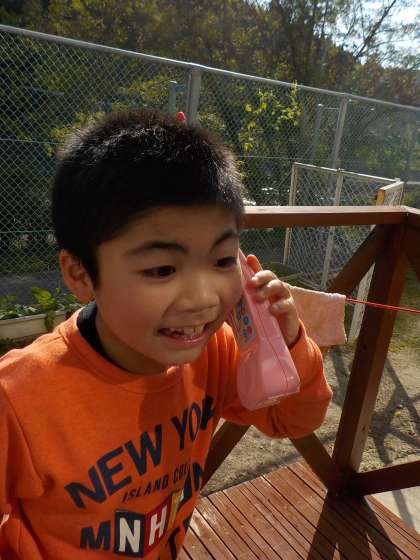 ひかり学級では,テレビ会議や電話型トランシーバーなどの道具を使って,学級以外のお友達と話をする機会を作っています。いろいろな人の話をしっかり聞いて,はっきりとした声で話す力を伸ばしています。