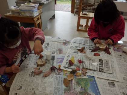 子どもたちは,秋のものを使って素敵なものをつくる活動を楽しんでいました。