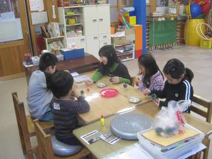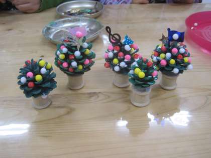 今日は,3年生の友達と休み時間にクリスマスツリー作りをして遊びました。きれいなツリーがたくさんできて嬉しくなりました。
