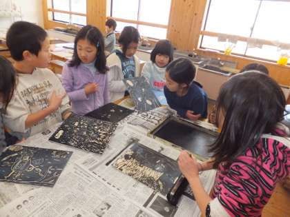 はじめて使う彫刻刀で,安全に気をつけながら彫ってきました。