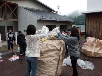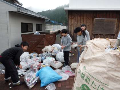 12月12日,空き缶とペットボトルの整理をしました。寒い日でしたが,子どもたちは,がんばって作業をしました。