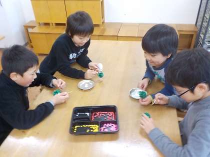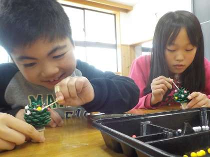 4年生と交流学習を行いました。前半は,漢字の学習をしました。自分たちの頑張りを見せることができてとても嬉しくなしました。後半は,クリスマスツリーを作りました。「上手にできているね。」「きれいにできているね。」とほめ合いながら作り上げることができました。