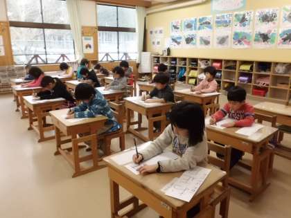 冬休みの宿題でも,書き初めに挑戦しました。本校では,1月15日〜23日までの間,2階ホールで書き初め展を開きます。それに向けて,今日の書写の学習でもう一度「お正月」という字を丁寧に書きあげました。子どもたちは,お手本をよく見ながら集中して取り組んでいました。友達の作品を見て,いいところをたくさん見つけることもできました。