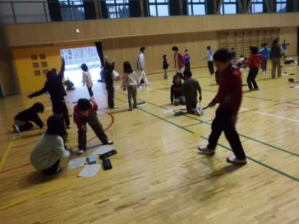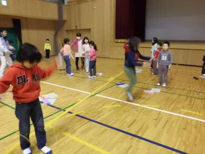 2年生のお兄さん・お姉さんとペアを組み,数を数え合ったり,教え合ったりして縄跳びにチャレンジしています。