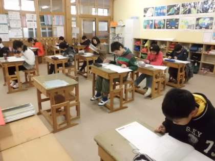 5年生は,ジョイントプログラム最後の教科,国語に取り組みました。最初に聞き取りテストがあり,大事なことを聞き逃さないように,集中して聞いていました。