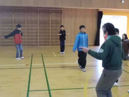 底冷えのする体育館で,今朝も元気いっぱい「おはようジャンプ」に挑戦しました。