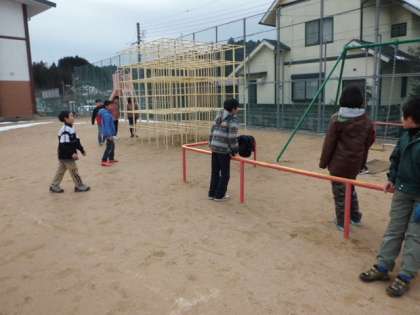 雪も解け,運動場で遊べるようになりました。この日は全員で「あて鬼」をして遊びました。