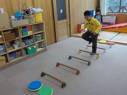 おはようジャンプでの縄跳びのほかにも,ひかり学級では自分の力に合わせて課題を選び,体のバランスを高める時間を作っています。少し難しい技ができると嬉しくなって,休み時間も夢中で練習しています。
