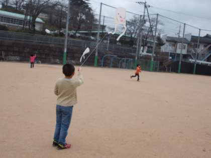 昨日,図画工作科でつくった“ぐにゃぐにゃだこ”を上げました。「先生!見てみて!」「高く上がっているなぁ。」と,子どもたちは運動場を走り回りながら,空に上がる凧を嬉しそうに見上げていました。