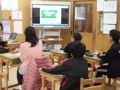 今日は,電子黒板に提示されたデジタル教科書を見ながら,英語を使ったクイズをして楽しみました。