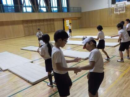 体育科の時間にマット運動をしました。友達と協力しながら,楽しく体を動かすことができました。