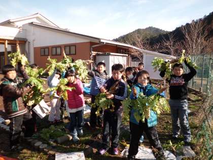 今日は,冬の植物について観察をした後,夏の終わりから育てていた大根の収穫をしました。いろいろな形に育った大根を,楽しそうに収穫していました。