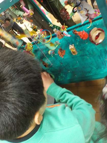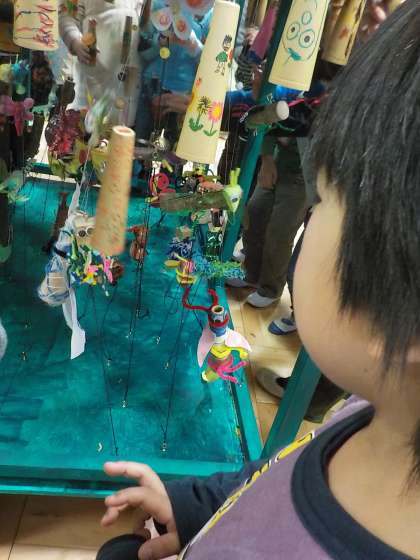 完成後,出来上がった作品でみんなで遊びました。色々な生き物がとび出す「いきものワールド」に夢中になって遊びました。