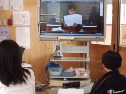 人物や事物を推薦するスピーチの学習をしています。今日は,みんなの前で推薦のスピーチをしました。それをビデオに撮り,自分の姿を見て次回までの修正ポイントを確認し合いました。