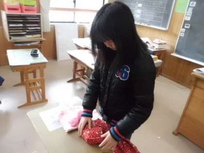 布の特徴を利用して,つくりたい形を立体に表します。布がどんな形に変身するのか楽しみです。