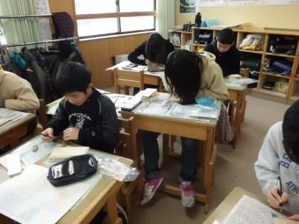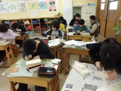 図画工作の時間に,卒業記念制作としてオルゴールづくりに取り組んでいます。今,彫刻刀を使って慎重に彫り進めているところです。