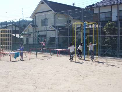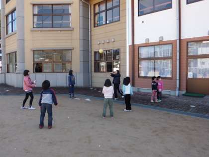 月曜日の昼休みは,いつもより時間がたっぷり。澄み切った青空のもと,子どもたちは運動場で楽しそうに遊んでいます。元気いっぱいの子どもたちです。