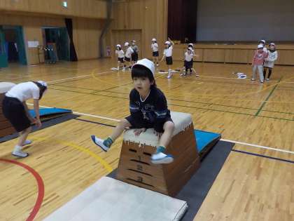 1年生と一緒にとび箱に挑戦しました。お友達の技をしっかりみて自分の技に生かそうとしていました。
