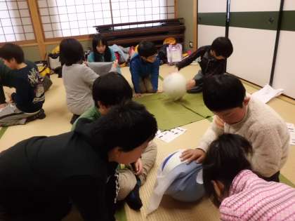 伝統や文化を学ぶ学習で,ふろしきの使い方をみんなで体験しました。
