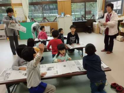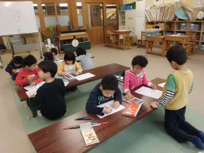 今日から1年生だけの早帰りが始まりました。学校に残っている子どもたちは,まなび教室でぬりえをしたり,新聞紙で紙でっぽうを作ったりしました。とても楽しんでいました。