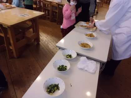 ひとつひとつ教えてもらいながら給食当番も頑張りました!