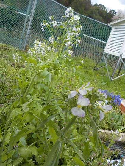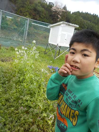 昨年度から育てているダイコンの花が咲きました。白や紫のかわいい花で見て思わず「きれい」という言葉がでてきました。種が採れるようにしっかり見守っていきたいと思います。