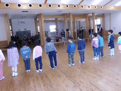 3校時の国語は,「うたにあわせてあいうえお」を,元気に読みました。そして,4校時の音楽は,お家の方々と一緒に“かもつれっしゃ”をしたり,みんなで“てとてであいさつ”を歌ったりして,楽しく過ごしました。朝会の発表の練習も見ていただくことができ,よかったです。