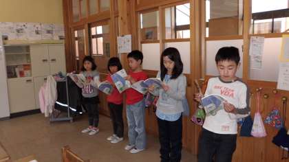 国語「きつつきの商売」の音読発表会の練習に取り組んでいます。