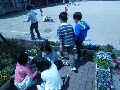 今日は,とてもよく晴れていました。1年生の子どもたちもみんな外に出て,元気よく遊んでいました。明日も晴れるかな?