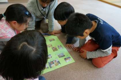 先週に行った遠足の振り返りをしました。写真を見ながら「この道は怖かったなぁ」「この橋は狭かったけど、がんばって一人で行けたよ。」などと、思い出を発表し合いました。来年はどこに行くのでしょう。今から楽しみになりました。