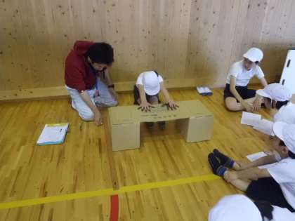 5・6校時に全校で新体力テストを行いました。縦割りグループで各種目の測定に取り組みました。みんなで楽しみながら,でも一生懸命頑張っていました。