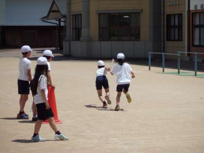 5月8日(金)リレーの練習をしました。5年生になってから2回目のリレーの授業です。教室で「上手なバトンパスの仕方」の動画を見てから運動場でバトンパスの練習をしたり,リレーをしたりしました。