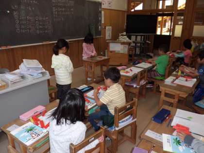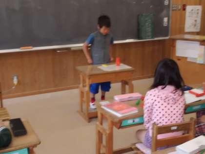 算数の勉強で21−8の計算を数え棒を使って考えました。自分の考えた方法を上手に発表できていました。