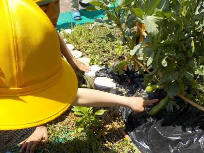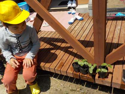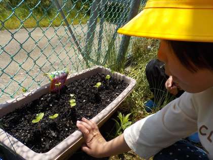 みるみるうちに成長しています。この日は自分が特に観察したい野菜を決めました。これから観察記録をつけていきます。収穫もみんな楽しみにしていました。