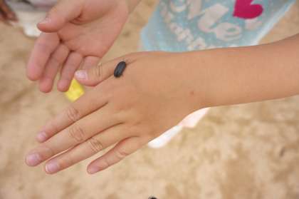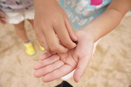 放課後に生き物を探して遊んでいると、大きなダンゴムシを見つけました。温かくなってきたので、ダンゴムシも活発にえさを探しています。
