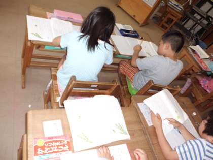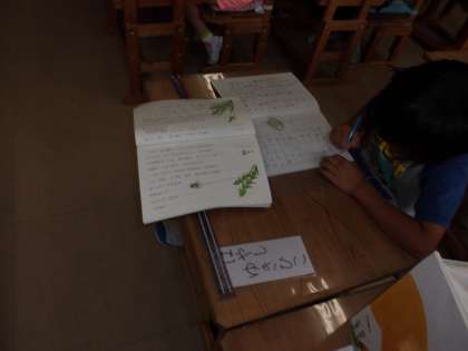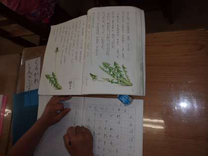 たんぽぽにはどのようなちえがあるか,教科書を参考にしながら読み取りました。とても集中し, ノートに丁寧な字で書いていました。
