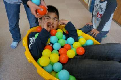おけにボールを入れてお風呂!放課後を楽しく過ごしました。