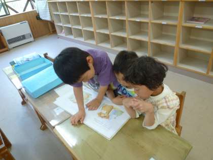 休み時間に進んで図書室へ行き,いろいろな本を借りてくる子どもたち。今日も,休み時間に読書を楽しむ子がたくさんいました。放課後には,少し難しい字がある絵本を,頭をくっつけながら読み合う姿も見られました。