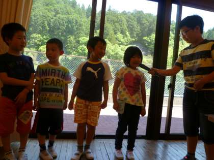 昨日から始まった“1年生インタビュー”。今日は,2日目です。4人の子どもたちが,自分の名前や好きな教科,遊びを紹介しました。終わった瞬間のホッとした表情は,「やりきった!」という感じでした。