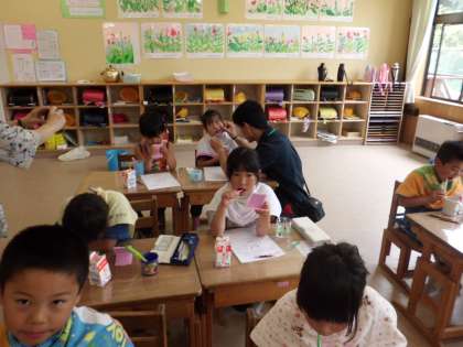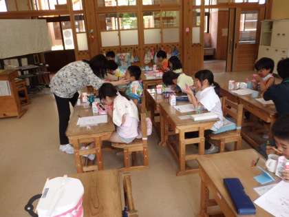 はみがき指導をしました。歯垢染出しをして,子どもたちは自分の歯のみがき残しに気付き,上手に歯をみがくことができていました。
